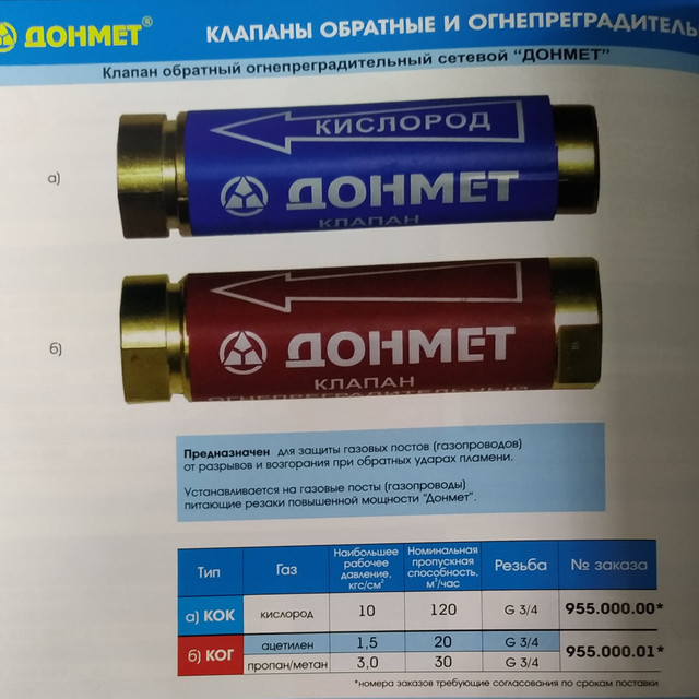 Клапан зворотний вогнеперешкодний мережевий «ДоннімЕТ» КОГ ацетилен, пропан-бутан, метан G3/4